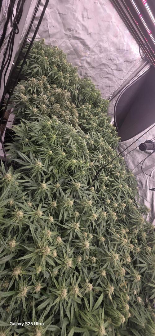 Yehudah Tucking in scrog and watching for mould, the rest arent too far behind. Trunks are fatter than golf balls! will upload later.