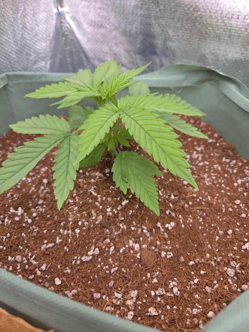 TooMuchTIm First week of life and here we go.. Tap roots showing so all have been transplanted into their forever homes. 12l fab pots. Dusted the transplant holes with great white and had the coco mix pre buffered with pro cal and very light nutrients. Small amount of ph'd rain water and it's all things go! Happy grows!