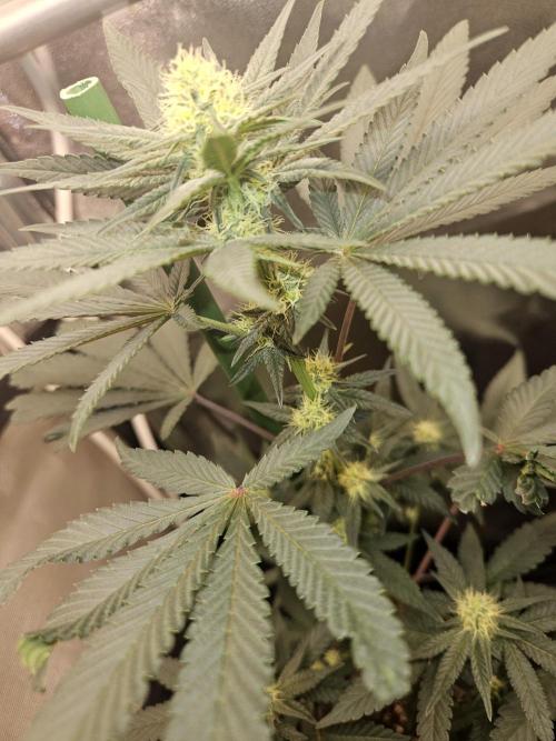 OrionSparkles I made them a slight defoliation of low leaves; they bloomed in full. Male pods did not appear again. I applied the third and final dose of Delta9 via irrigation. ๐ฆโโฌ