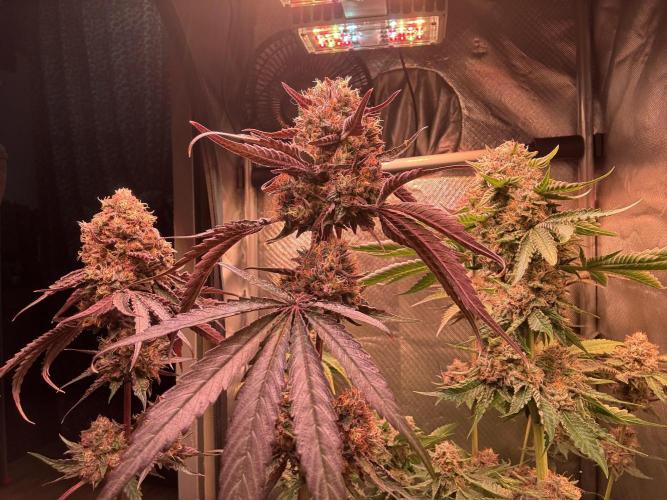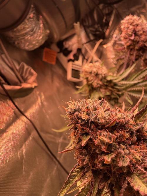 Barakuda Hi zusammen ! Woche 8 ist zu Ende. , Tage 59 Blüte , es duftet extrem nach grün citrus , blaute ist sehr kompakt , 2 ladyed haben etwas mehr lila Farbe bekommen , am Wochen Ende wir geerntet, 💚💚