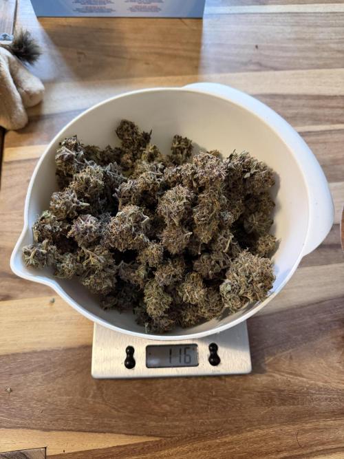 OrionGrowgul Schöne, dicke Buds mit toller Lila-Färbung. Trichome sind Schätzungsweise zu 10-20% braun. Eine Woche werde ich sie noch lassen, dann ist Erntedank.