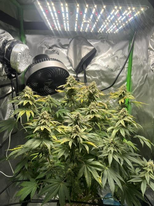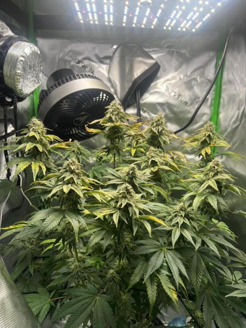09/30/2025- Well my leaf discoloration has advanced quite a bit and it appears now that the leaves are turning purple, the buds seem to be changing color also. I'm really hoping this is part of the natural growth process... It's kinda weird because my outdoor plants leaves have turned purple also but that is being triggered by it getting cold at night. My tent shouldn't be getting that cold at night/lights off so I don't know what is triggering it.