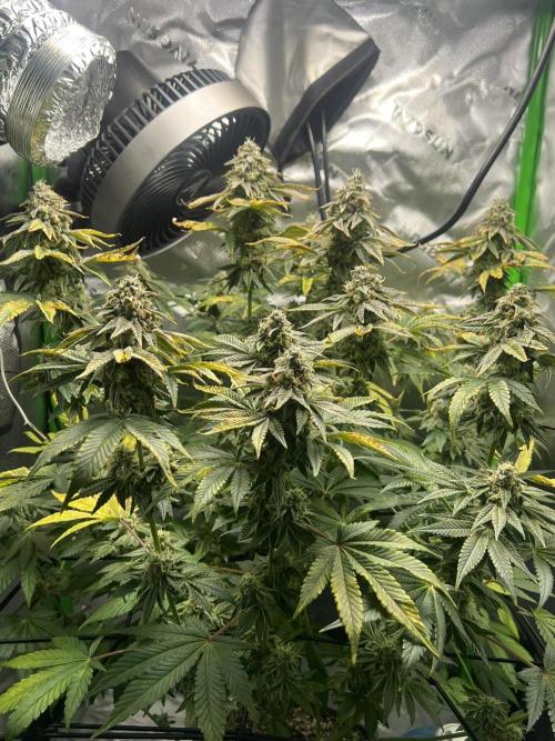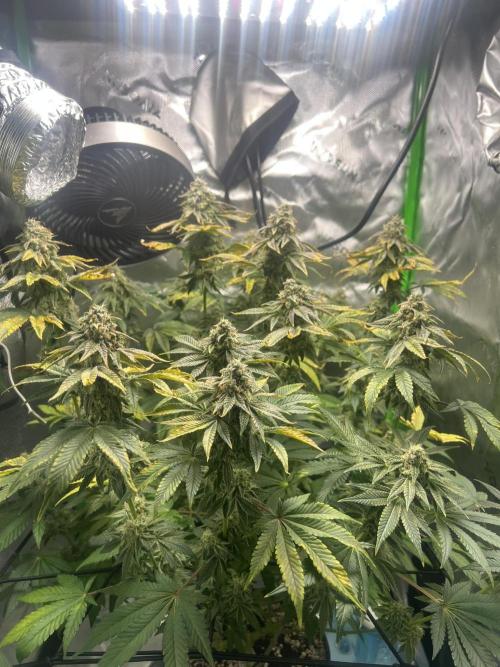 09/30/2025- Well my leaf discoloration has advanced quite a bit and it appears now that the leaves are turning purple, the buds seem to be changing color also. I'm really hoping this is part of the natural growth process... It's kinda weird because my outdoor plants leaves have turned purple also but that is being triggered by it getting cold at night. My tent shouldn't be getting that cold at night/lights off so I don't know what is triggering it.