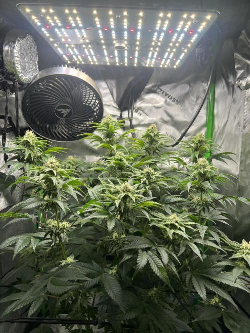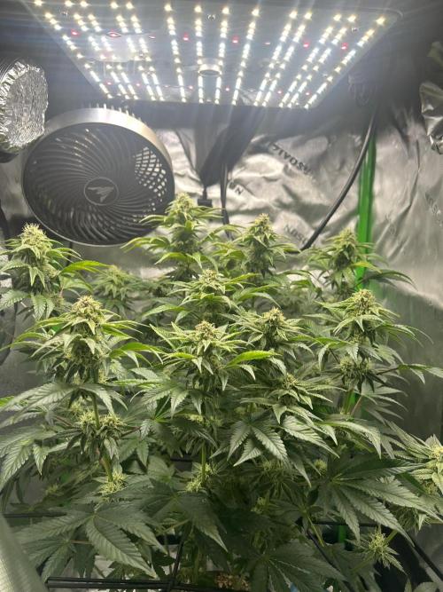 PDanklin 8/11/2025- It's day one of Week 3 of Veg and she is coming along quite nicely. She is short and squat, which I like but I feel like she might a be a little slow in the growing department? It honestly could be just me being impatient 😅 also I'm used to growing outdoors in the sun and they just explode with growth out there! I do feel like she is picking up speed though which makes sense. Not worried or anything, could be genetics or just a slow down from the transplant and top. Probably the latter lol