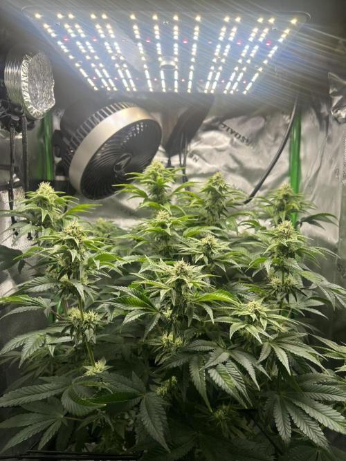 09/20/2025- Wrapping up the 3rd week, everything is going smooth. Did a light skirting and took off some smaller buds that we're never going to get very big. She is drinking about a gallon of water every week. The bud stacking is looking good, they should connect to make some nice looking colas. 😍
