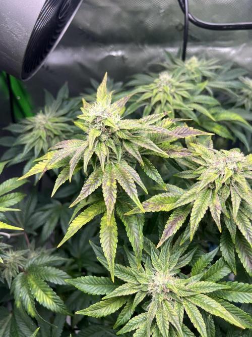 09/30/2025- Well my leaf discoloration has advanced quite a bit and it appears now that the leaves are turning purple, the buds seem to be changing color also. I'm really hoping this is part of the natural growth process... It's kinda weird because my outdoor plants leaves have turned purple also but that is being triggered by it getting cold at night. My tent shouldn't be getting that cold at night/lights off so I don't know what is triggering it.