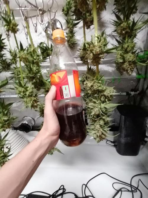 Brujha77 Sooo, Die beiden haben es nun auch geschafft. Punktlandung, genau 9 Wochen Blüte. Muss sagen der Run war absolut entspannt. Gerade in Verbindung mit dem Blumat... Gewogen wurde nicht... Hängen nun zum Trocknen im Zelt bei ca. 21°C und ca. 48-55% Rlf.