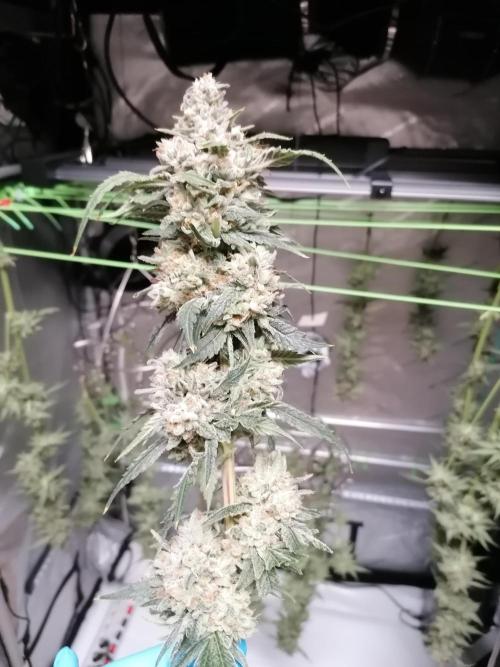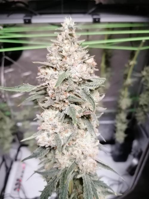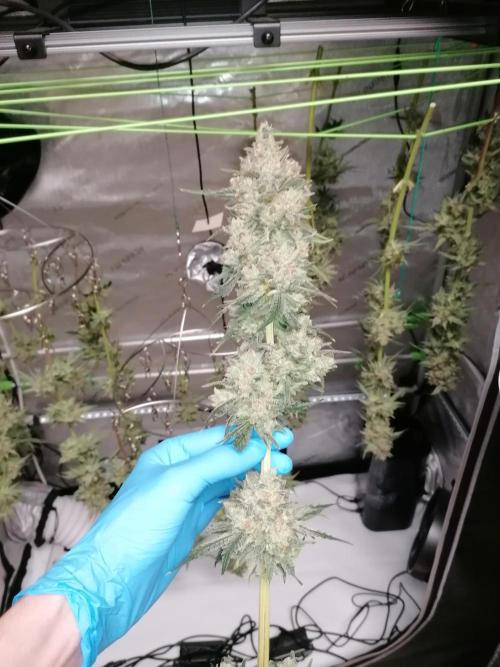 Die Sorte darf gerne jederzeit wieder ins Zelt Absolut problemlos. Schöne Budstrucktur, grade bei dem einen Pheno (die größere, rechte Pflanze), aber auch die kleinere hatt schön solide Buds. Guter Trichombesatz und riechen beide wirklich komplett nach Zitrone mit Papaya bzw. Südfrüchten Dss wird was leckeres.