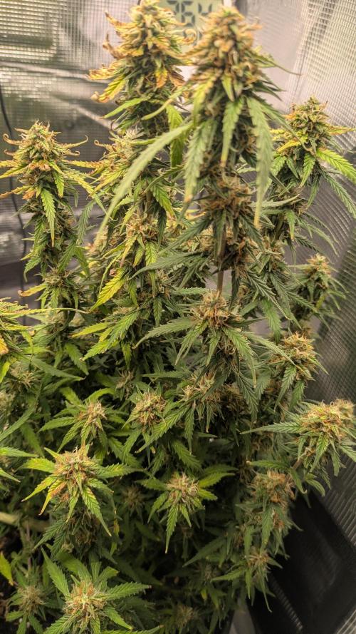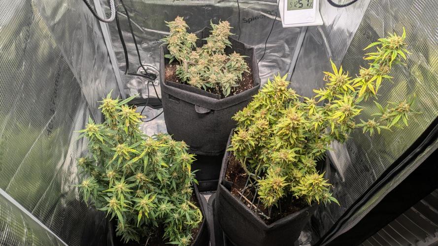 Pflanzen wurden stark entlaubt. Weiterhin gedüngt mit Hesi Bloom Complex. Es geht der Entphase entgegen...