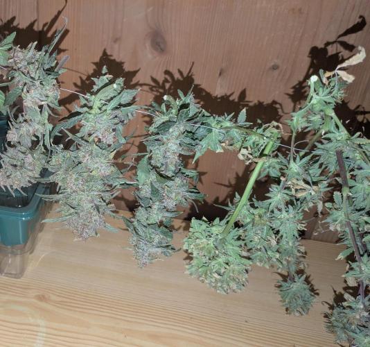 Die Skunk No1 ist bereits geerntet und hängt zum trocken im Schrank!