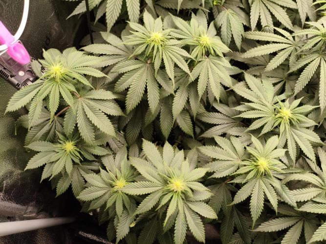 Week 11 Light cycle changed to 12/12h Grow tent isn't big, can't let them grow to much