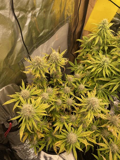 Die Pflanzen werden nochmal ordentlich gegossen. 3L Wasser mit 1ml/L CalMag und 1,5ml/L Hesi Phosphor Plus pro Pflanze. Zusätzlich wird noch etwas Wasser in die Untertöpfe gekippt da ich die nächsten zwei Wochen im Urlaub bin. Ich denke das sie gut gereift sind wenn ich wieder komme wenn nicht sogar erntereif.