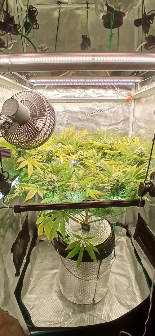 I added in AC infinity supplemental lights to the under canopy for experimental purposes. I use these for my seedlings however, I decided to use them to see if I notice any difference. I used them on my 1st indoor run (Wurlz F1) and thought they made little difference but I'm thinking just to give it all I got on this lady. I am also using marshydro IR and UV supplement lights. We will see if all these give me a bountiful harvest with the most frosty and dense buds I have ever grown.