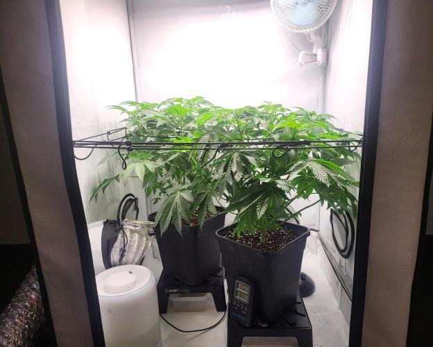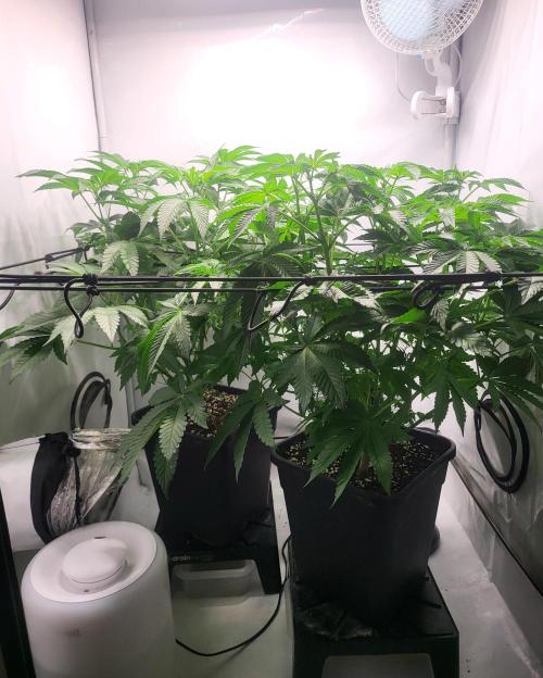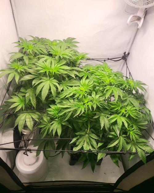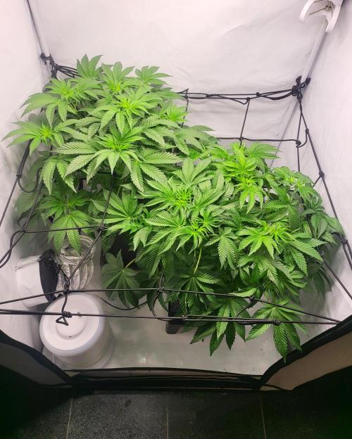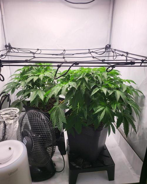 Kevs_Best Jo die sind echt krass gewachsen, der eine vorne sehr buschig, die oberen Fächerblätter des Hauptstamms mussten entfernt werden. Der hiintere wächst anders, und beide wurden einmal getoppt, noch 3 Tage veggie, sodass die eine 4 Wochen und 3 Tage Veggie hatte, währenddessen die hintere #2 3 Wochen und 5 Tage, dann gehts ab morgen in die Blüte.