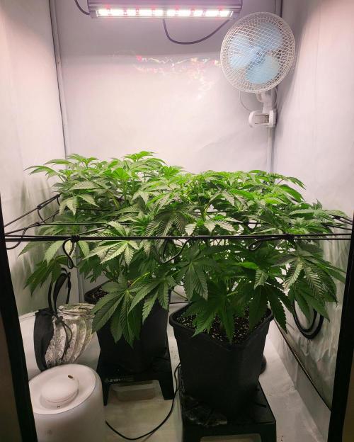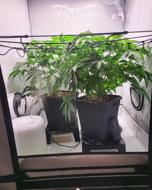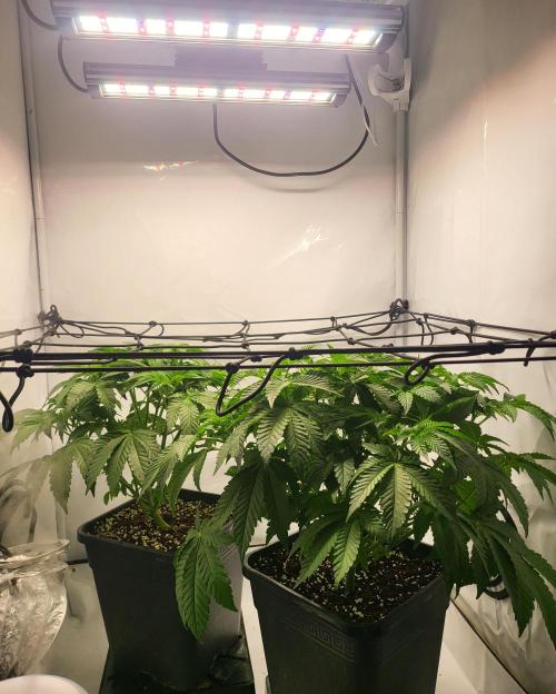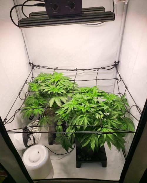 Yeah, they have really grown a lot, the one in front is very bushy, the upper fan leaves of the main stem had to be removed. The one in the back grows differently, and both were topped once, still 3 days of veggie, so the one had 4 weeks and 3 days of veggie while the back one #2 had 3 weeks and 5 days, then starting tomorrow it goes into bloom.
