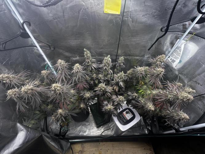 The grow has entered its final two weeks, and the plants are in full ripening mode. Buds are dense, heavily coated in trichomes, and showing rich color tones across the canopy. No major changes have been made this week, keeping stability as the plants reach their final expression.