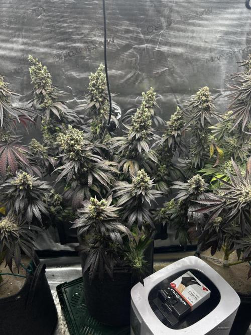 Dehumidifier added – keeping RH lower to prevent excess moisture around dense colas and improving air safety during late bloom