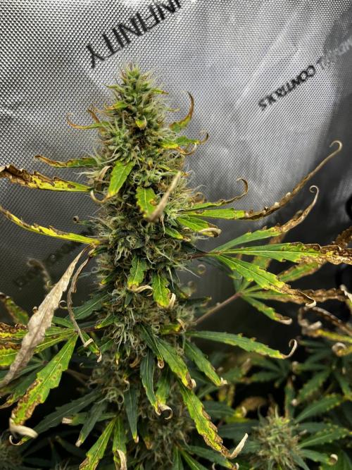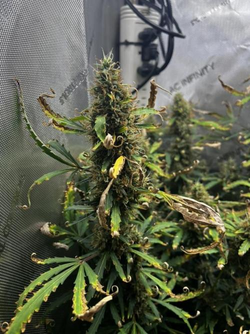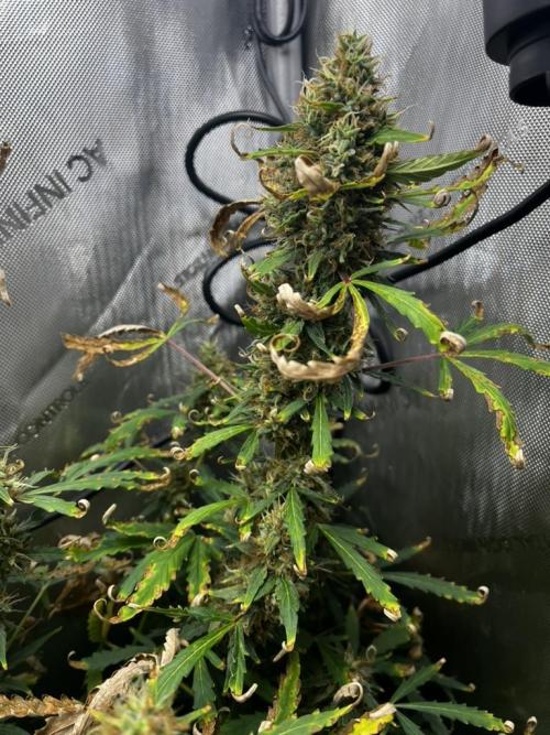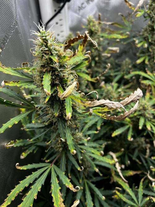 Lots of dead/dying leaves. Normal fade is making it look worse. Buds look good.