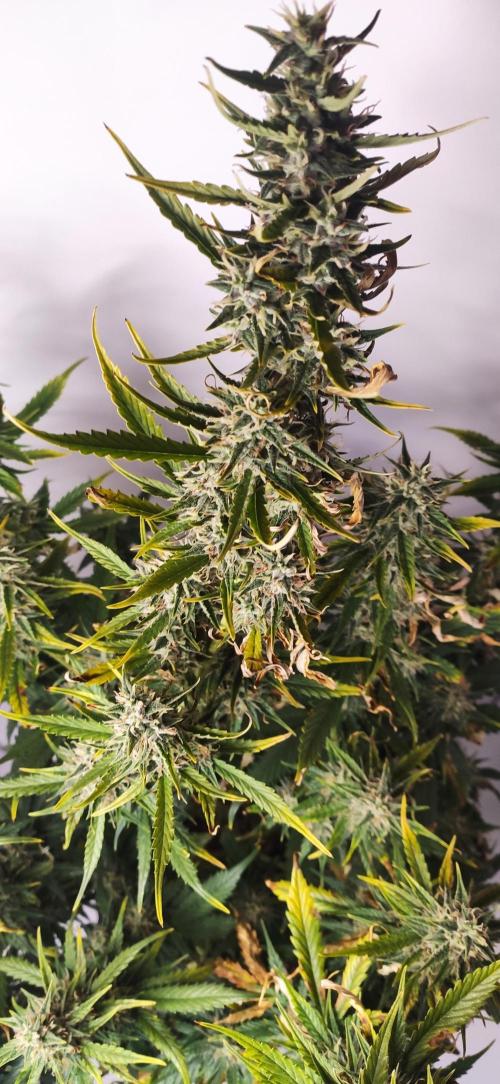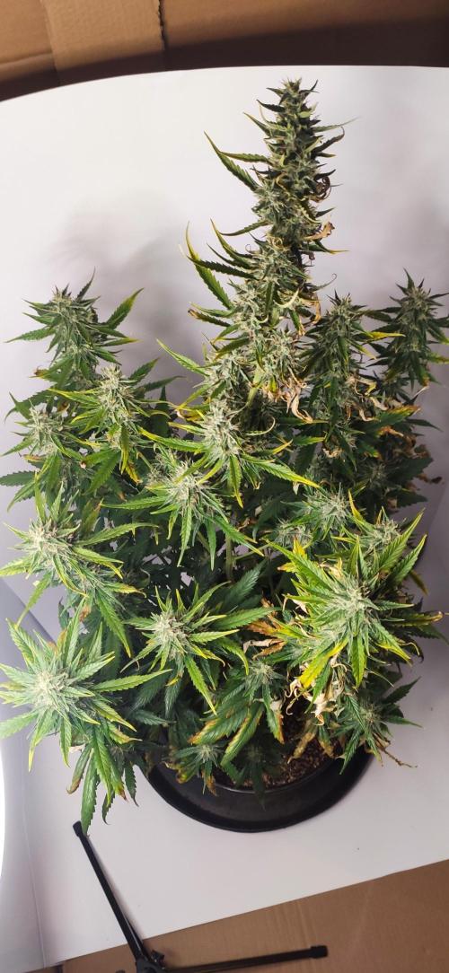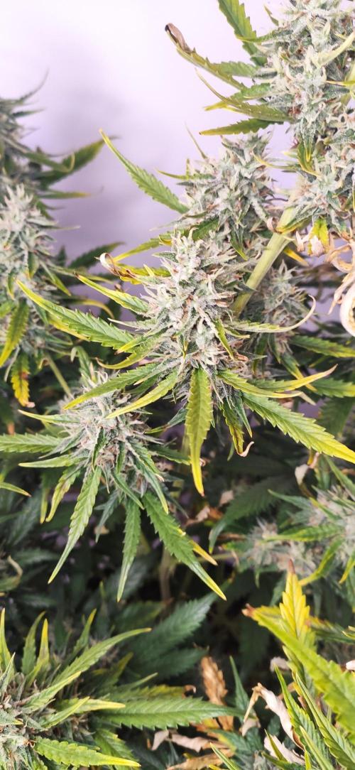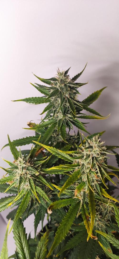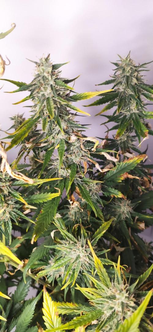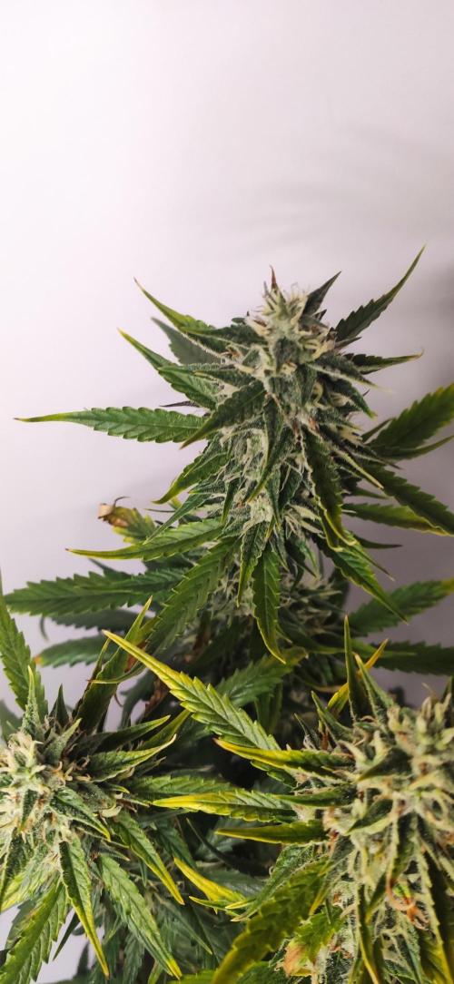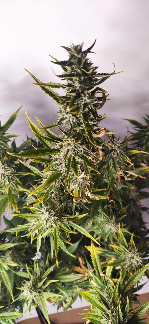 Mariejohanna Die kleine lässt auf sich warten :D Nein alles gut wie man sehen kann gute Entwicklung der Blüten. Müsste den Main Bud leider ein bisschen auf die Seite legen zwecks der Lichtverteilung. Hat die kleine aber dankbar angenommen.