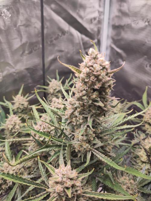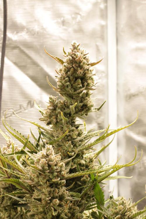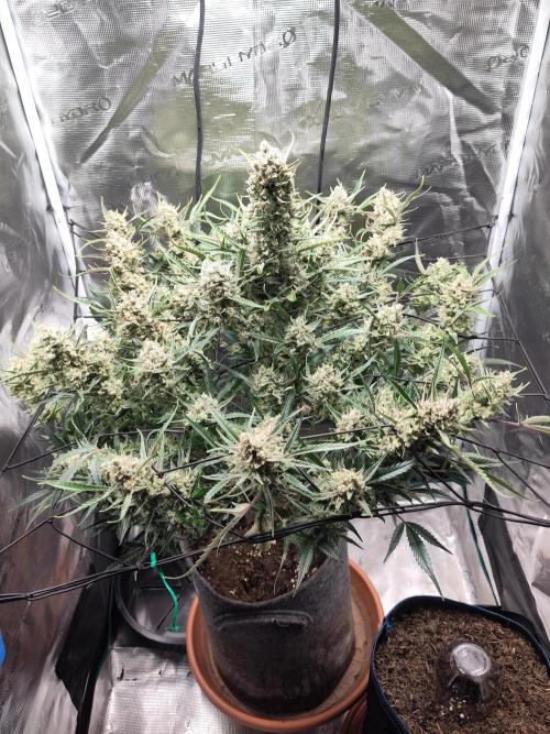 Other than that, the plant is doing great, and thankfully this tent (unlike the BbM) doesn’t have any spider mites. The aroma is already amazing, and I’m really looking forward to harvest time.