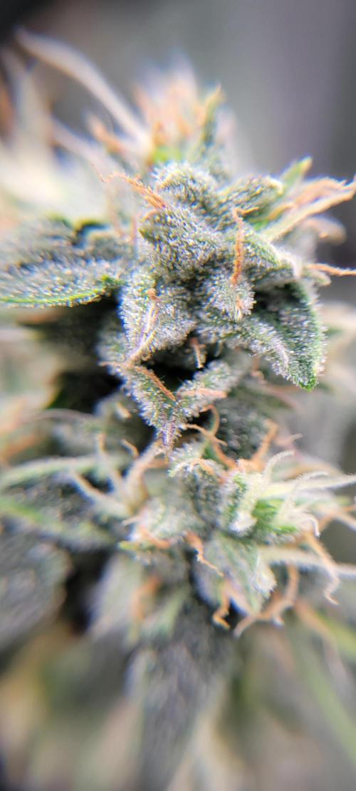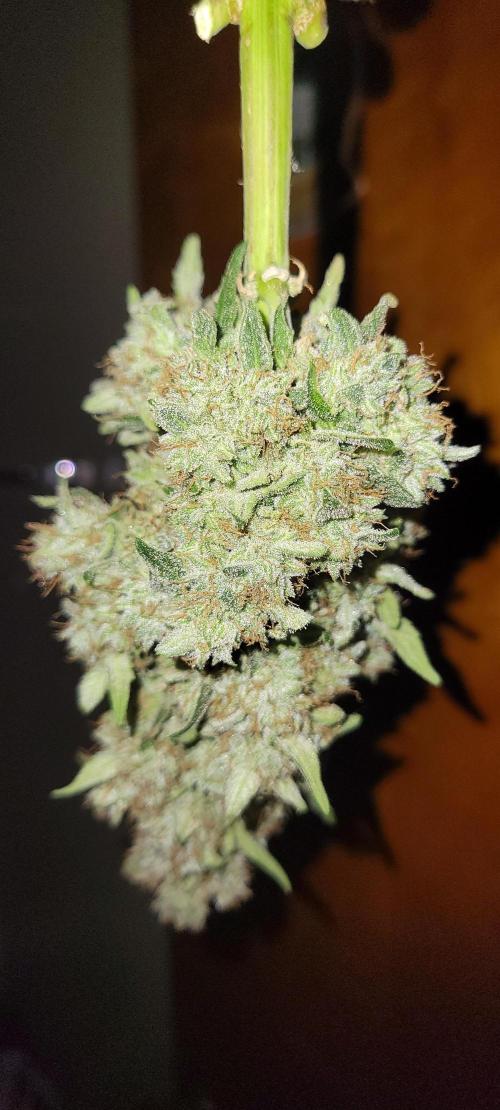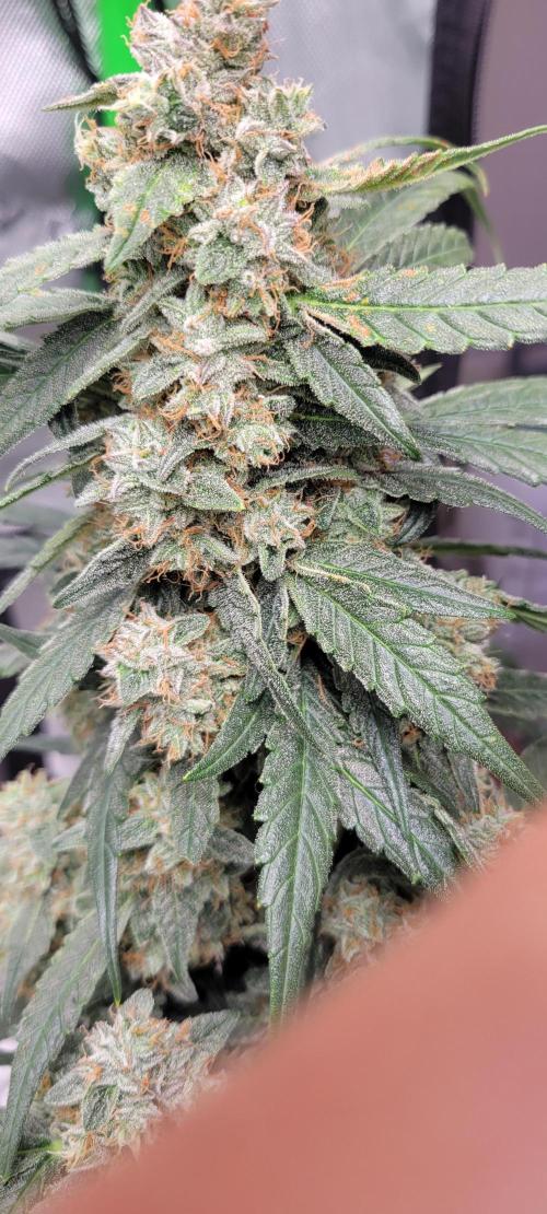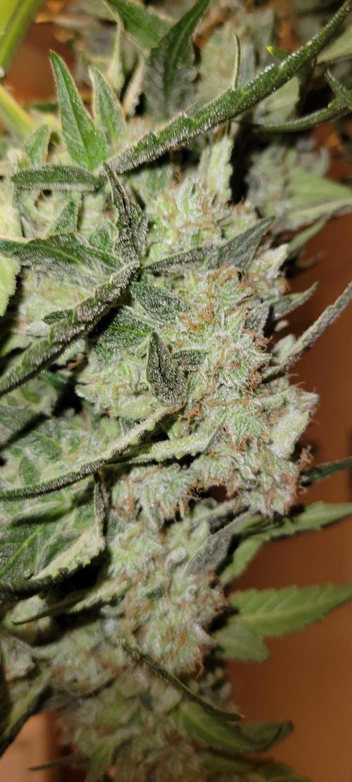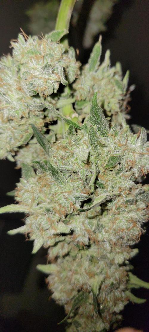 PavementPunk This mighty F1 queen has continued to impress. I didnt think she was gonna stack and plump for some reason. Maybe it was the half assed late training i gave her idk but shes chunking on the flower nicely. Been getting 50% doses of flower fuel. I might go 75% for this last dose. Then a couple molasses waterings and just water flush. 2 to 3 weeks out to harvest minus like 2 days lol i dont think you can grow a zamnesia f1 without getting 60 grams. I think 8 inches from the canopy was a little too close with the aerolight maybe 10 inches min on max power even during full flower.