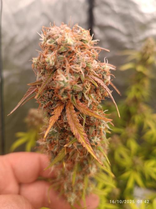 Super buona. Pianta robusta con fiori non troppo giganti ma sono super duri, compatti come pietre. Un profumo fruttato di uva....sono sicuro che provandola foto che è ancora più buona. Specialmente per la mia patologia no