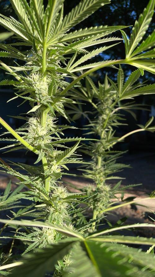Both plants seem to be stretching, as well. Since this is an outdoor grow I'm not exactly sure when flowering officially starts, but this seems as good a time as any to call this Flowering Week 1.