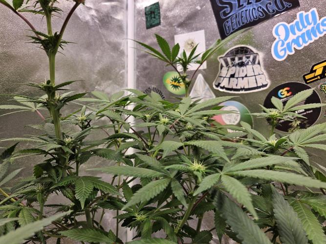 Inside_growlab Our White Runtz is starting to form its first flowers. I'm considering defoliating a little earlier than usual, but this time I may have cut too little before flowering, and to be honest, I'm not up for tiny, crappy buds.
