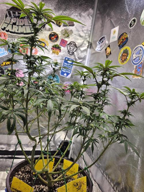 Inside_growlab The Lemon Shining Silver Haze is growing well. The main stem was tied to the side nicely to give all the shoots an equal chance. At 24 cm tall, I'd say it's off to a great start!