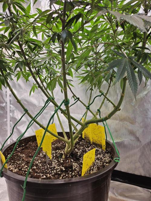 Inside_growlab This week, I removed a few leaves from the bottom and tied up the main stem. I find this method quite funny, as the main stem keeps bending back and forth. Otherwise, we're at 38 cm, and the plant looks very healthy!