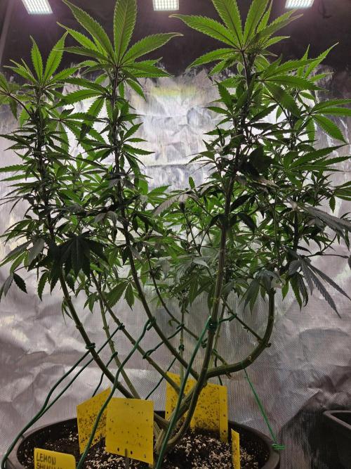 Inside_growlab The Lemon Shining Silver Haze is growing well. The main stem was tied to the side nicely to give all the shoots an equal chance. At 24 cm tall, I'd say it's off to a great start!