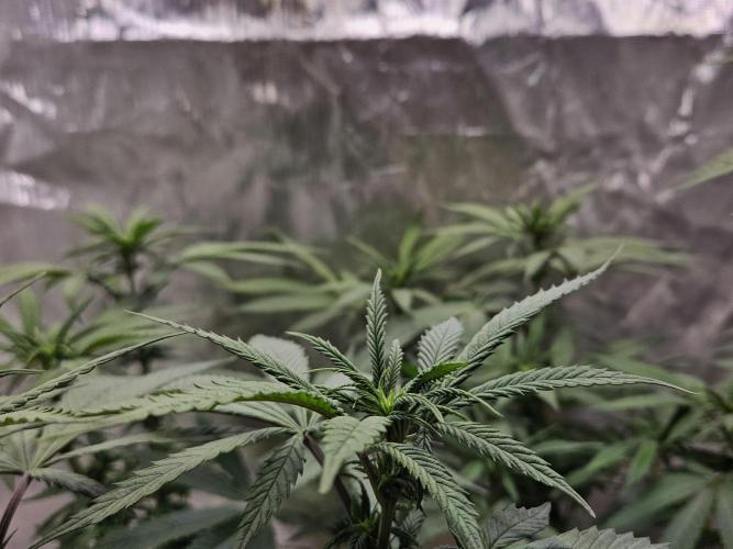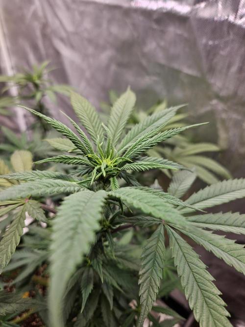 Inside_growlab We're now at 66 cm in height, and I've removed a few more leaves to allow more air to get in. The first flower heads are already looking pretty good and are coming in gradually!