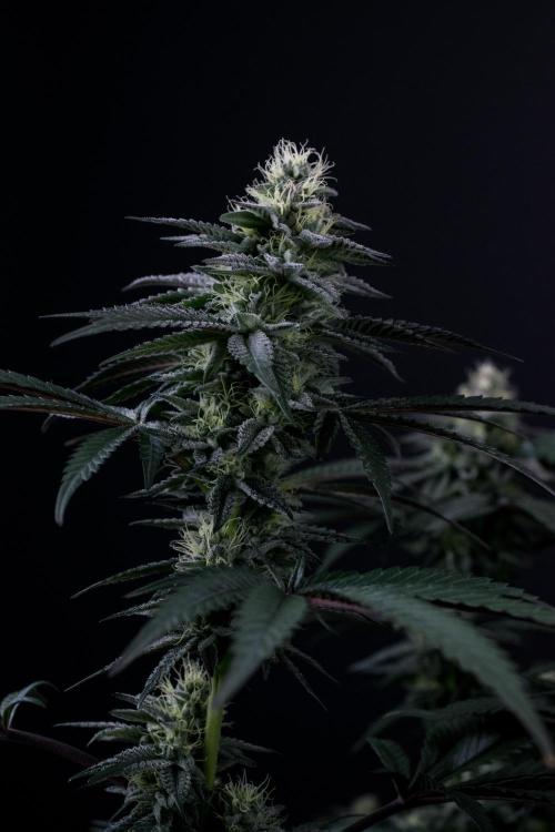 Looks: Frosted buds with purple tones, super resin-heavy – a trichome paradise