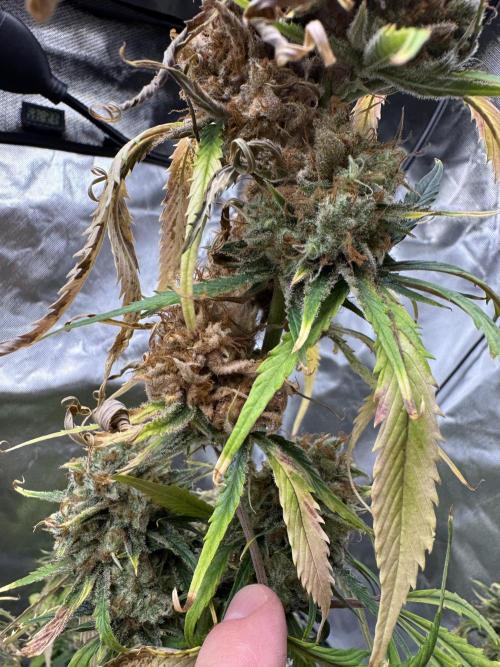 Schmucker Der Headbud ist weggeschimmelt. Leider leider aber der Rest der Pflanze sieht gut aus. Also weg mit dem Headbud und schön weiter reifen lassen