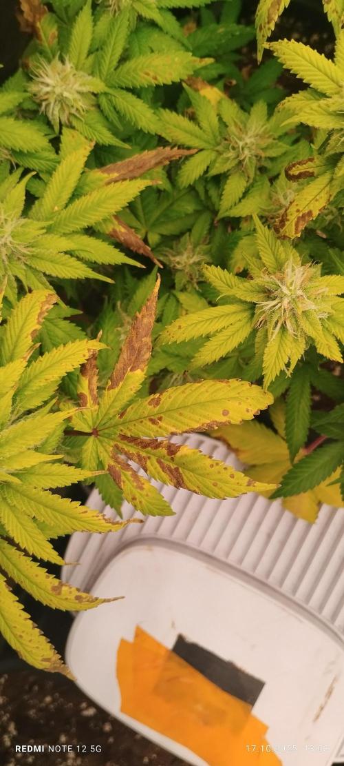 Nachdem eine Pflanze Verbrennungen gezeigt hatte hab ich dabei nicht soo viel gedacht nur das die mische vielleicht doch etwas stark wan(EC=1.6) und es wurde immer ein wenig schlimmer und von gestern auf heute sind alle Pflanzen blasser geworden und drei Pflanzen hatten schwere Verbrennungen davon 2 og kush und eine glookies. Ich hab denn erstmal mit 35L Wasser pro Topf gespült und hab die töpfe abtropfen lassen und werde jetzt 2 Tage warten und denn eine Düngerlösung mit 30-50% geben und hoffen das es sich dann wieder stabilisiert