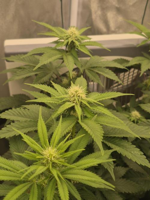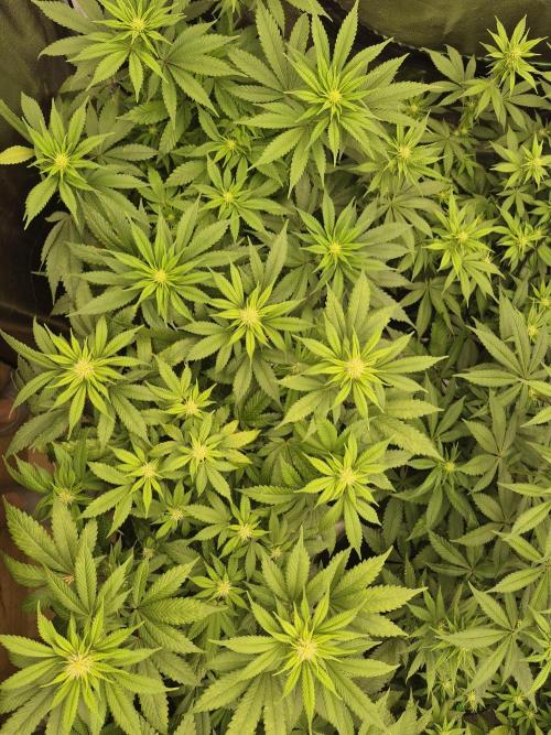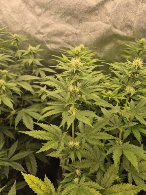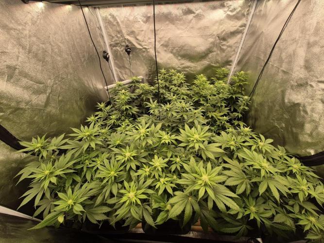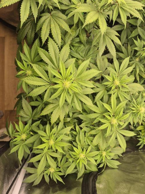 Pblc_10 Hab jetzt n bissl entlaubt eigentlich wollte ich noch ne Woche bis zwei damit warten aber es wurde mir zu buschig also hab ich es vor gezogen und werde nochmal gründlich in der 3. Blütewoche entlauben. Die Lampe macht sich bis jetzt sehr gut ich hab viel stabilere Temperaturen und wenn man das Zelt öffnet ist da keine dicke Wand mehr drin sondern angenehme und keine warme Luft seitdem komm ich nicht mehr über 26°C wenn's wirklich warm ist also hat es sich definitiv gelohnt. Der wuchs gefällt mir sehr gut auch dir FPR wächst prächtig ich hab die vom Kollegen bekommen zum testen bei ihn kam "Unkraut" raus das sah sehr ausgefranst aus umso froher bin ich das meine auch nicht nur im Ansatz ähnelt aber man kann immer mal n krüppel dabei haben und die og kush macht sich auch prächtig besser als ich vermutet hatte ich bin auf die Ernte gespannt wie die Qualität der drei Sorten ausfallen wird.