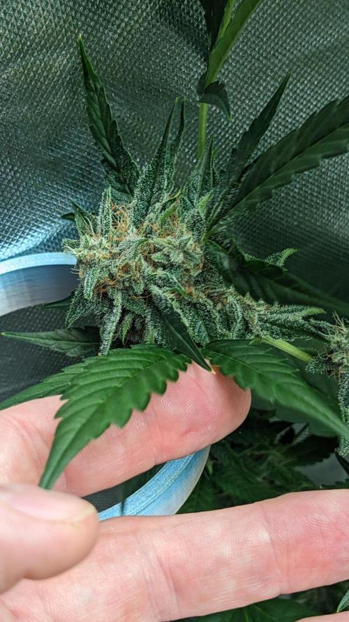 GroloCup This one's got about a week left. Very tight buds with tons of frost. One of the quickest autos I've run considering I'm at around day 60. The branches can barely hold up the nugs! I'll stay on the gas and keep everything the same for this week, then look at where the trichomes are this weekend, and see how that amber count is coming along.