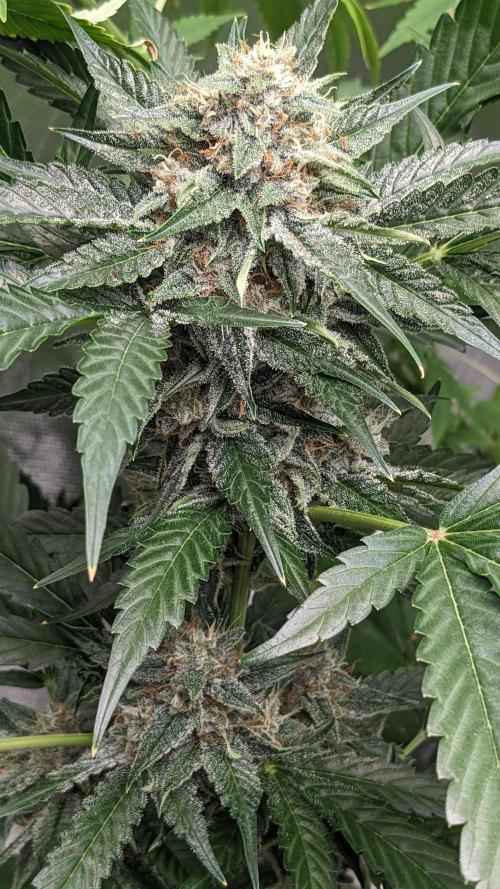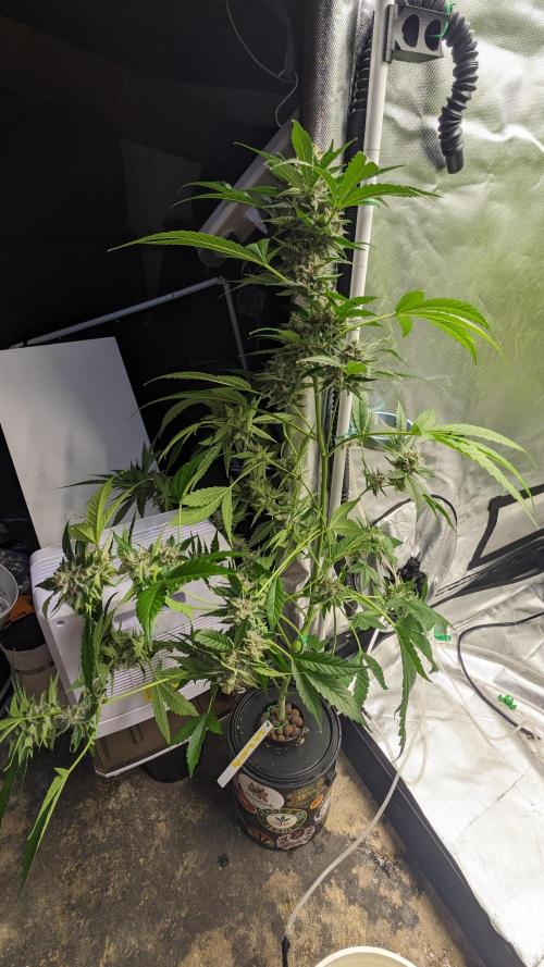 GroloCup Cruising along, life's been busy so updates have gotten sporadic. She's grooving along, nice tight buds with tons of frost and a funky fermented fruitiness is oozing off her. Keeping things the same this week with her parameters, but only filling the buckets about half, I'm dabbling with seeing if the roots will grow and reach for the solution in the bucket, increasing the amount of nutrients she'll uptake during the final half of flower.