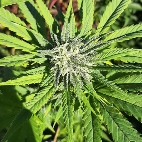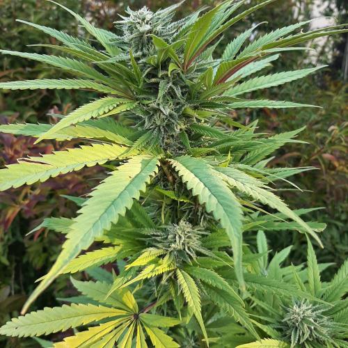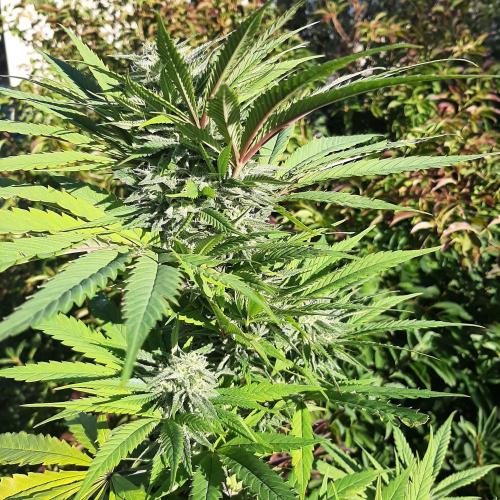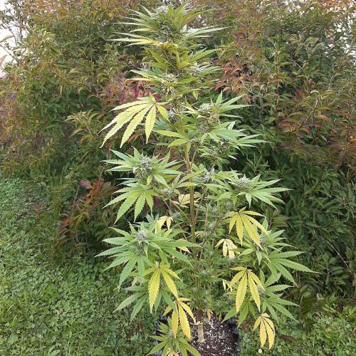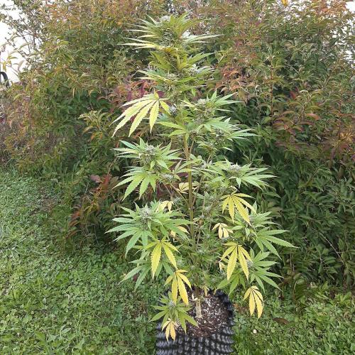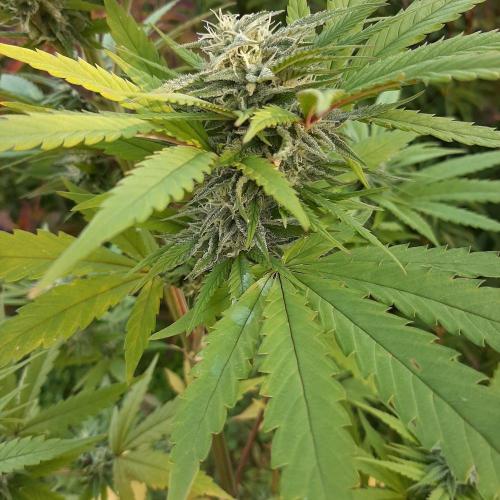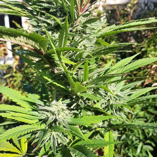 MisterZ Bonjour les amis. Les températures sont toujours aussi fraîches et il pleut, je ne sors plus cette plante de la serre. J'ai déjà enlevé plusieurs grandes feuilles jaunies, les fleurs prennent du volume et la résine apparaît. L'odeur est toujours aussi faible. Pas de traces de moisissures ni d'infestation d'insectes. Elle a un déhanché très latino. 😀. M.
