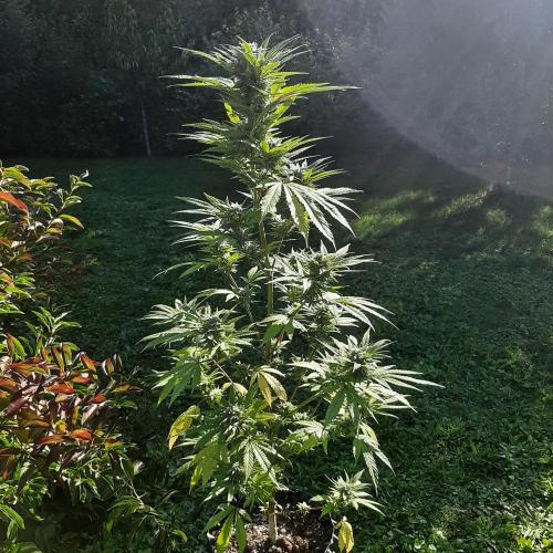 Je voulais cultiver une variété haze en extérieur alors j'ai choisi cette variété pour ses saveurs de citron et de fleurs et sa hauteur limitée. En commençant début juillet la plante aura eu environ 5 semaines de croissance avant passage en floraison. J'espère avec une croissance courte en limiter la hauteur. Je m'attends à un développement et un stretch importants pour une récolte début octobre. Je l'ai directement la semée dans un airpot de 21 litres en intérieur le 30 juin et sortie aussitôt germée. J'ai récupéré de la terre que j'ai enrichi de 35g bacteriosol et de 35g d'un engrais longue durée en pellets. Il y a eu beaucoup de vent et j'ai étayé cette petite plante avec 2 baguettes. Le climat de la région que j'habite est plutôt doux mais le temps devient pluvieux vers la fin de septembre, des moisissures peuvent se développer à ce moment. Donc surveillance accrue en fin de floraison. C'est parti pour un nouveau voyage dont j'espère revenir en planant dans la brume ! 😀. M.