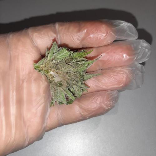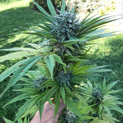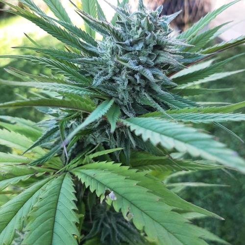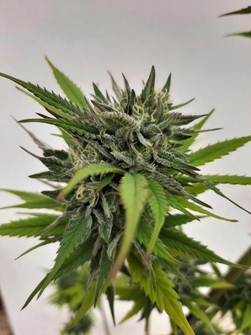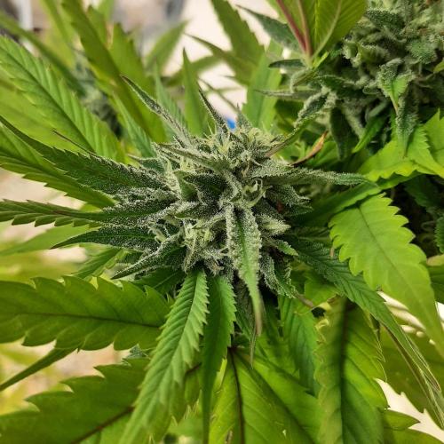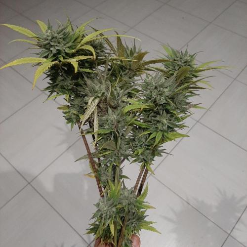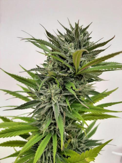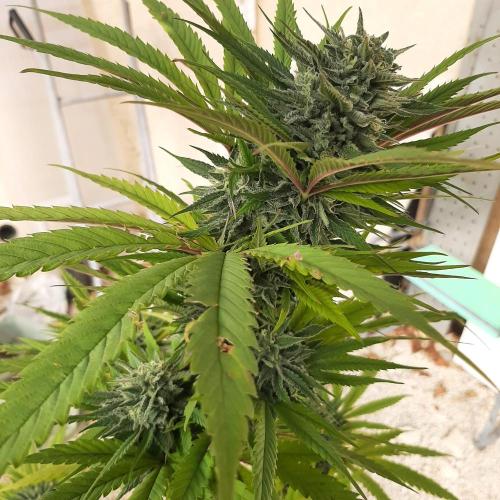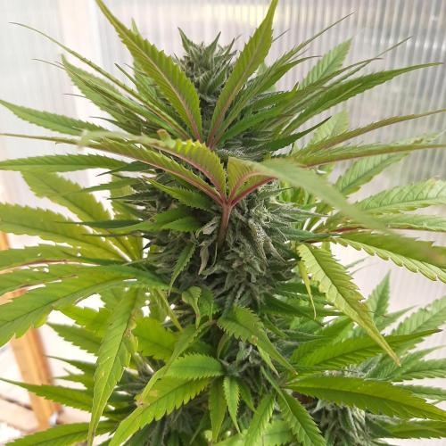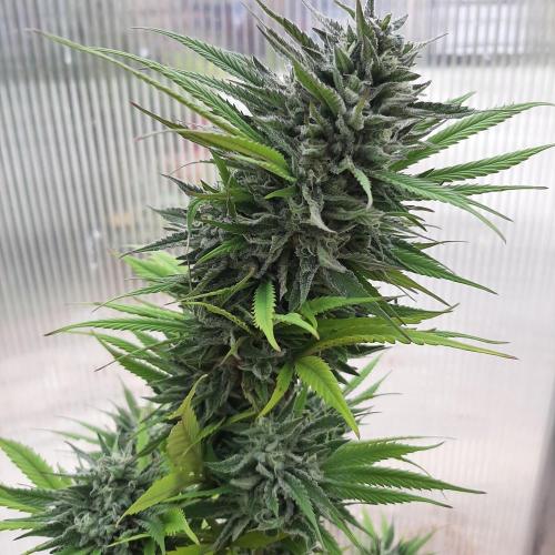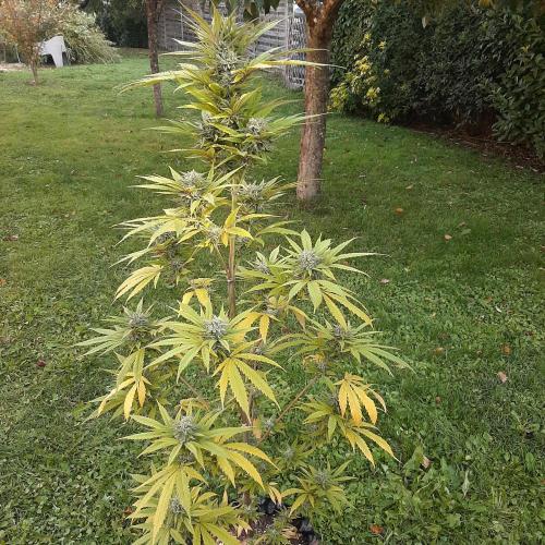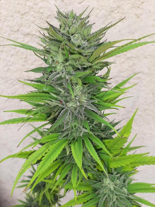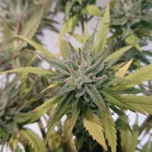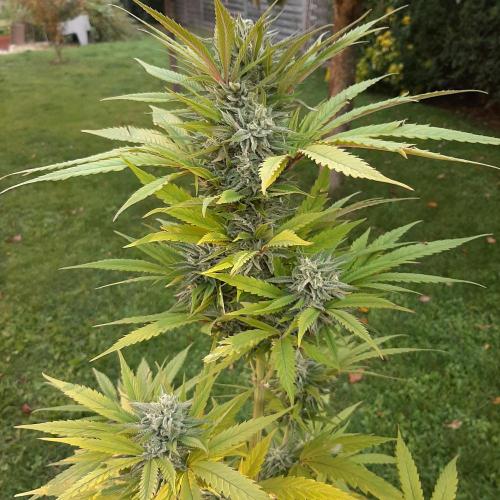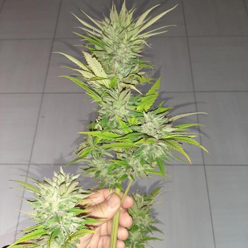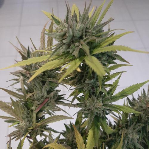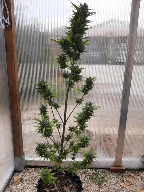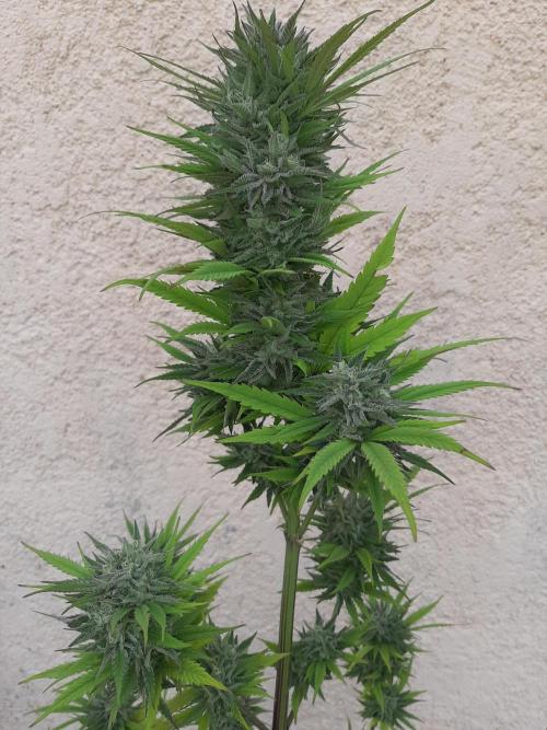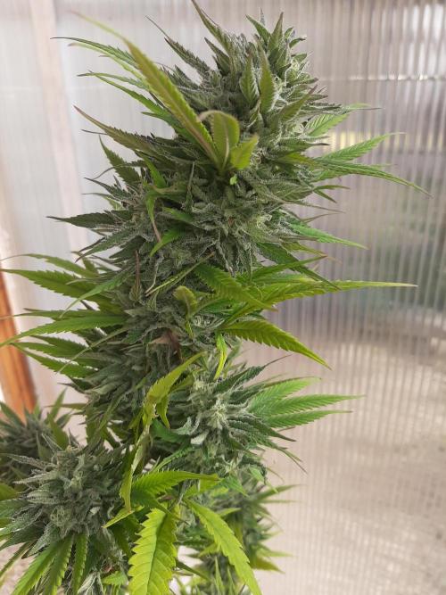 MisterZ Bonjour les amis. Les températures sont toujours aussi fraîches et il pleut, je ne sors plus cette plante de la serre. J'ai déjà enlevé plusieurs grandes feuilles jaunies, les fleurs prennent du volume et la résine apparaît. L'odeur est toujours aussi faible. Pas de traces de moisissures ni d'infestation d'insectes. Elle a un déhanché très latino. 😀. M.