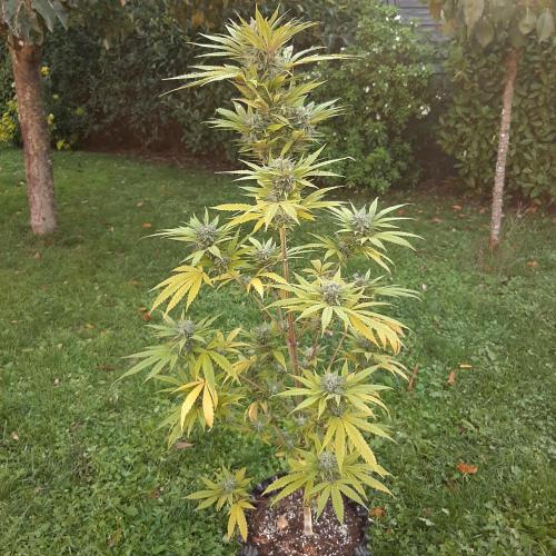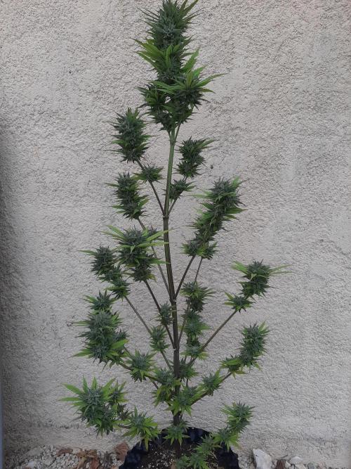 MisterZ Bonjour les amis. Cette semaine la météo a été très variable, des orages et des averses mais aussi du temps sec, une amplitude de température importante. Je guette le moment où je vais mettre cette plante à l'abri. A cette saison je ne crains plus les insectes mais les moisissures. Les fleurs se forment encore et le stretch est vraiment terminé. Voilà tout va bien. Merci à tous, portez vous bien. M.