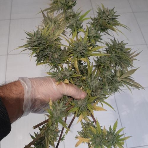 MisterZ Voilà c'est fini. Encore une expérience. Avec la dernière tempête Benjamin il a beaucoup plu et le était temps très humide. J'ai anticipé la récolte j'ai découvert des moisissures! J'ai jeté une bonne poignée. Toutes les fleurs sont au sechage en petits morceaux pour éviter d'autres moisissures et secher rapidement. Bon c'est un peu ma faute j'aurais dû choisir une variété à floraison rapide. J'ai récolté en trois fois pour donner un peu plus de temps au fleurs du bas. Finalement après 2 canicules, une tempête, quelques efforts de logistique et un premier nettoyage j'en obtiens 250g frais. Ça me convient parfaitement. Sent très bon, l'odeur est plutôt légère et sucrée. Merci les amis pour vos commentaires et votre soutien ! M.🙏🙏🙏