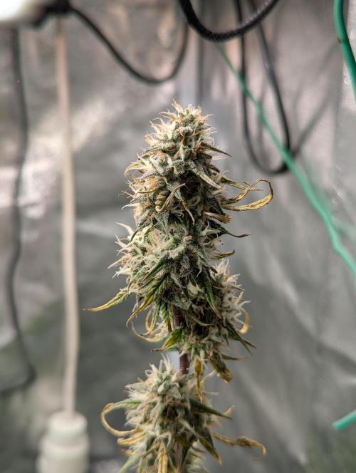 The last buds with mostly white pistils are also maturing now and the trichomes on the calyxes are mainly cloudy. Some single ones are also slowly turning amber so I think next or the week after I have to free some space for drying.