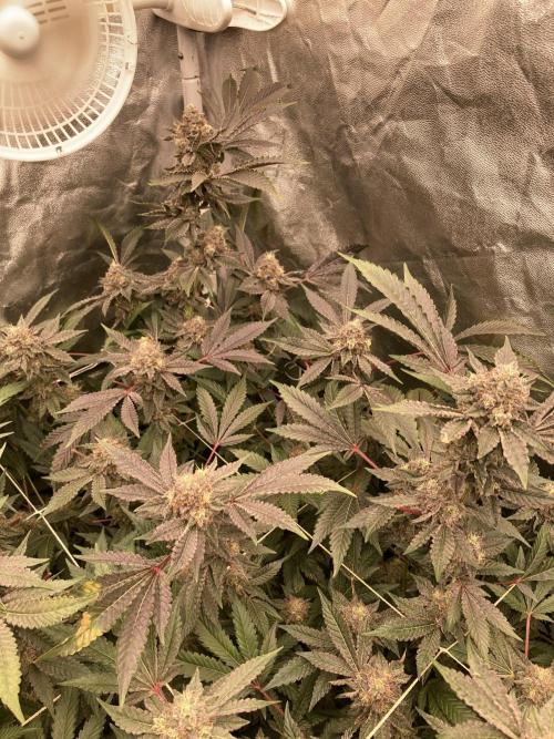 PersonalSmok3s All appears well with these Ladies 😸 They’ve all completed their first week of flush and I’m starting to see the first signs of a fade coming on. The buds are absolutely rock solid and the tent stinks when it’s opened. You’re immediately hit with a strong gassy, dank wave of goodness. If you happen to brush against the plants they give off a lovely fruity Runtz aroma. I’ve added an extra fan to help with airflow. I plan on harvesting them all at some point during this next week. Happy with how everything looks, until next time 🌱