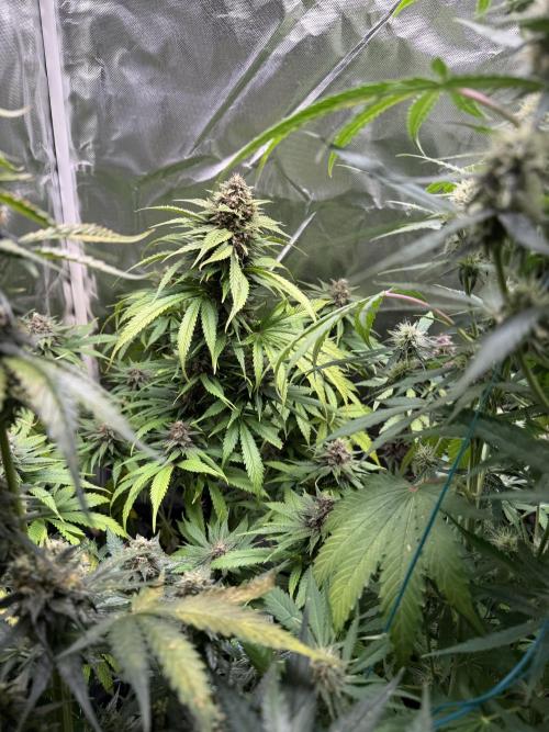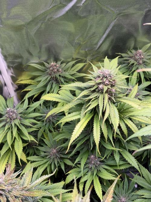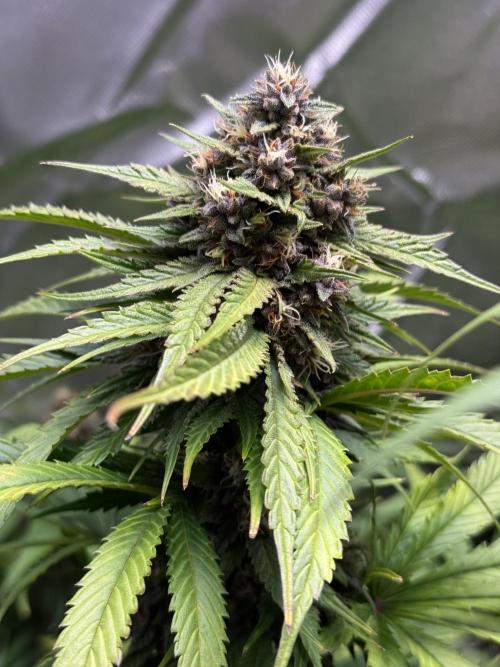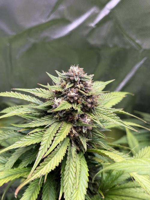 Nocone_Purple The Purple Lemonade is really starting to show its character this week. The plant has stretched well and now stands tall with around 12–13 strong tops. Buds are forming nicely, and the purple hues are slowly beginning to appear, giving it that signature look. Resin production is kicking in early, and the aroma is becoming more noticeable day by day. If development keeps up at this pace, this one could turn into a real showpiece in the tent. Estimated dry yield: 120–150g.