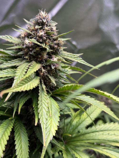Nocone_Purple Purple Lemonade is developing nicely with vibrant green leaves and early shades of purple appearing in the flowers. Buds are stacking evenly and the resin is becoming more noticeable, giving off a fruity, sweet aroma. This plant still has a lot of bulking up to do, but the structure suggests a good yield potential.