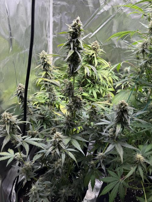 Nocone_Purple The Blueberry has been doing really well this week. Since I carefully removed all the pollen sacs, the plant hasn’t shown any new signs of hermaphroditism. Flowering is continuing nicely, with healthy bud development and no stress reactions so far. The tops are stacking well, and the plant looks stable again, which is a relief. If it stays on this track, I expect it to finish strong with a clean harvest. Estimated dry yield for this plant: 100–130g.