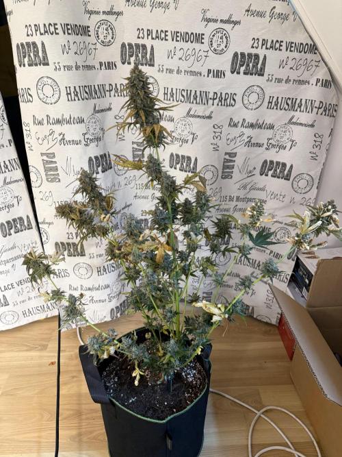 Nocone_Purple The Blueberry has been doing really well this week. Since I carefully removed all the pollen sacs, the plant hasn’t shown any new signs of hermaphroditism. Flowering is continuing nicely, with healthy bud development and no stress reactions so far. The tops are stacking well, and the plant looks stable again, which is a relief. If it stays on this track, I expect it to finish strong with a clean harvest. Estimated dry yield for this plant: 100–130g.