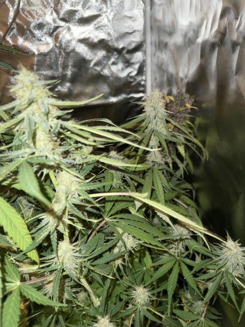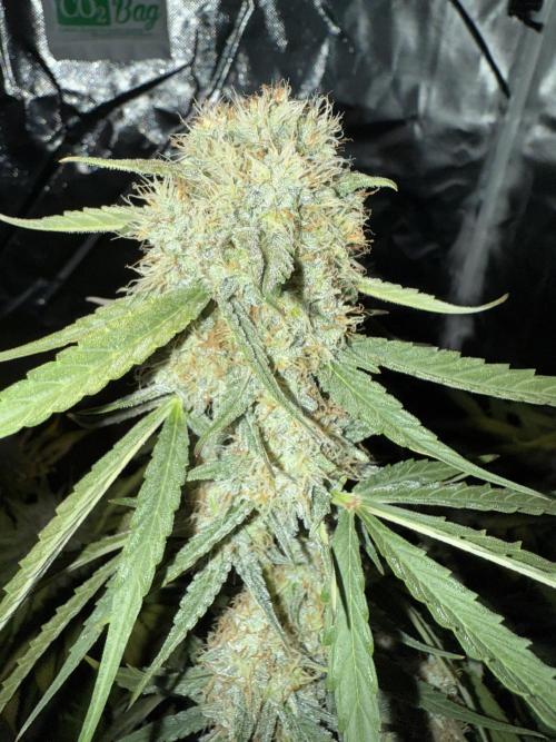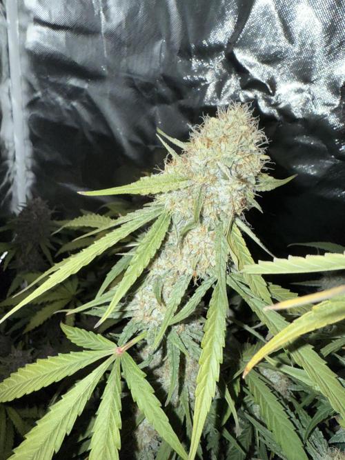 At this stage, the plant is starting to shift energy from vegetative growth to bud development. Expect noticeable bud swelling over the next 2–3 weeks. Trichome production has just begun, so early resin development is visible on the emerging flowers. The smell is still mild but starting to develop its unique aromatic profile.